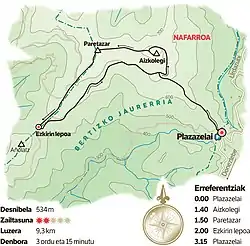 Mapa del palacio de Aizkolegi en el señorío de Bertiz.