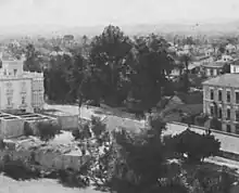 En el Jardín del Instituto de Murcia se llevaron a cabo distintas clases de plantaciones, según hemos sabido por las Memorias de esta institución. Por medio de los exámenes de los peritos agrimensores de tierras tenemos varias descripciones del Jardín, con el reconocimiento, medición y levantamiento del plano de la finca. En los ejercicios se indicaba que había un huerto llamado Jardín Botánico del Instituto Provincial de Murcia cuyos límites eran: al levante las posadas del Malecón, al mediodía el Paseo del Malecón con la puerta principal, al poniente un huerto particular y al norte el huerto de las monjas isabelas y la calle del Mesón, donde había otra puerta de acceso al Jardín. El estudiante Francisco Alonso y Ruiz decía en su examen que la finca tenía una cabida de “72 áreas, 58 centiáreas y 75 decímetros equivalente a 5 tahúllas, 4 octavas y 17 brazas. De estas tahúllas la mitad está plantada de berenjenas, dos variedades de flores y el resto de barbecho y paseos. Conteniendo además tres moreras, cuatro palmeras, cuatro melocotoneros, un plátano, una magnolia, tres perales, once pereteros, ocho higueras, cuatro albaricoqueros, ocho granados, cuatro acacias, un níspero y veinte y seis cipreses”.[4]