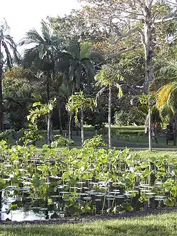 Aquí se encuentran reunidas una gran cantidad de especies y variedades de nenúfares gigantes con los grandes estanques de Victoria regia y de lotos (Nelumbo nucifera), un bosquete de bambús dorados provenientes de la India, las palmas de Raphia, un Baniano de unos doscientos años, y un gran número de especias.