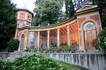 El edificio del XVI siglo dedicado a San Rocco, aunque se encuentra en el exterior de la área del jardín Jacquard, representa uno de sus importantes elementos paisajísticos.