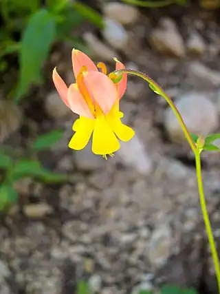 ![]() La denominada "Western columbine" Aquilegia formosa planta alpina nativa del parque "Sawtooth National Forest". | ||