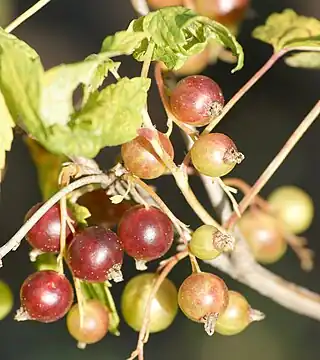 ![]() Ribes nigrum, una de las especies cultivadas en el "Jardin botanique de Briollay". | ||