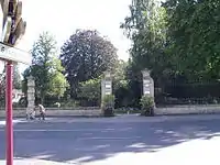 Al seguir más allá del tenedor por el camino de entrada más cercano al recinto, el visitante se encuentra con un arce de Montpellier, o Acer monspessulanum[6], poco antes de la llegada al estanque. En el extremo opuesto del estanque se eleva un tilo, con hojas profundamente dentadas bastante inusuales. Pasando por alto el pequeño puente sobre el estanque, que no pasa por el quiosco de música a lo largo de un tilo de grandes hojas Tilia platyphyllos y se puede tomar un pasillo hacia la rosaleda, pasando por delante de un laurel-cerezo[7] después una serie de madreselvas en forma de nido, de la especie Lonicera nitida[7], arbustos introducidos desde China a Europa en 1908[7]. Pasando el jardín para los niños, se puede observar a la familia más antigua de árboles conocida, ya que habrían aparecido hace más de 270 millones de años, el Ginkgo biloba (este macho)[8]. Después un ciprés calvo[6] o ciprés de Luisiana, y a un par de pasos, un calicarpo de Bodinier, entre un Weigelia, un Lonicera y un Pinus mugo[9]. Un poco más lejos, cerca del jardín para niños un grupo de tres Paulownia tomentosa[6]. De vuelta en la rosaleda por el camino que llega a una glorieta rodeada de arbustos de fuego o Pyracantha coccinea. Un camino conduce a la casa del guarda, rodeada de hortensias, un manzano de hojas de ciruela Malus prunifolia, de un Carpinus, de una celinda, de una Symphoricarpos albus, de una Kerria japonica y de una Aucuba japonica. Desde allí hay otro camino a lo largo del recinto para dirigir al punto de partida, la entrada situada en la avenida Philippoteaux. En este último camino, se puede ver una serie de Magnolia de Soulange[10], así como un Ginkgo biloba, femenino esta vez[8].