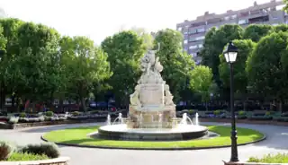Situada en la rotonda central del jardín, fue realizada durante los últimos años del siglo XVIII y perteneciente a un conjunto de fuentes realizadas para la mejora urbana durante los reinados de Carlos III y Carlos IV junto a otras como las fuentes de las plazas de San Marcelo, San Isidoro, del Grano y la fuente de San Martín en la calle Plegarias[1]