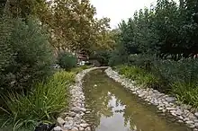 Alrededor del riachuelo también se ha recreado en los últimos años un paisaje de ribera fluvial. Destacan las praderas de césped del lago situado al oeste del jardín con estructuras de madera para sentarse, el jardín de moreras situado junto al riachuelo, la zona de pícnic habilitada en el pequeño pinar del parque o la rosaleda situada junto al lago oeste.