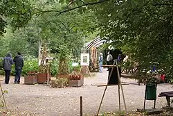 En el jardín botánico cuenta con un antiguo estanque junto a un castillo de arcilla, pérgola, caminos tanto rectos como sinuosos, puente de madera, invernaderos con plantas tropicales y subtropicales. En uno de los estanques se encuentran kois.