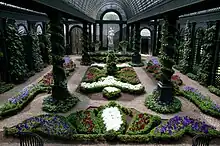 ![]() Vista de los Duke Gardens, monstrando el invernadero "Trumbauer" que alberga los jardines de plantas Semi-tropical, Italiano, y Colonial. | ||