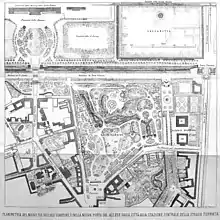 En 1780 el archiduque Fernando Carlos de Austria, virrey de Milán desde octubre de 1771 hasta mayo de 1796, encargó al arquitecto Giuseppe Piermarini que transformara esa zona en un parque público, englobando en ella también los espacios de los dos monasterios, ambos con sus propios jardines. Las obras fueron realizadas entre 1782 y 1786, bajo la dirección del maestro de obras Giuseppe Crippa, y el 26 de septiembre de 1786 Piermarini realizó el examen de todas las obras y las aprobó: fueron los primeros jardines públicos de la ciudad. Los materiales necesarios para la ejecución de las obras fueron declarados exentos del pago de aranceles y la mano de obra para su traslado fue obtenida entre los condenados a cadena perpetua.[4] El proyecto, del estilo del jardín francés, con parterres geométricos y amplias perspectivas de avenidas arboladas, estaba coordinado con el de los Boschetti (1787-1788), los jardines de la Via Marina (consistentes en hileras paralelas de tilos, olmos y castaños). En la esquina noreste de los jardines, hacia la Porta Venezia, junto a la doble escalinata monumental que subía a los bastiones de las murallas, había un amplio espacio dedicado a la práctica del juego del pallone. La posterior construcción del Museo de Historia Natural (1888-1893) y del Planetario de Milán (1930) no ha alterado la perspectiva de la larga hilera de árboles imaginada por Piermarini.
