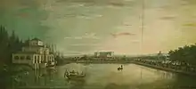 El Estanque Pequeño del Retiro. Madrid (1701), de Pieter van den Berge. Museo de Historia de Madrid. Se identifica al Estanque Ochavado como Estanque Pequeño, en contraposición al Estanque Grande.