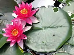 La segunda es un invernadero tropical acuático proporcionado de bejucos (bignonas, jazmines, pasionarias, ipomeas), bananos, daturas y helechos. En el verano las cuencas son invadidas por los nenúfares azules, rosados, rojos y blancos.