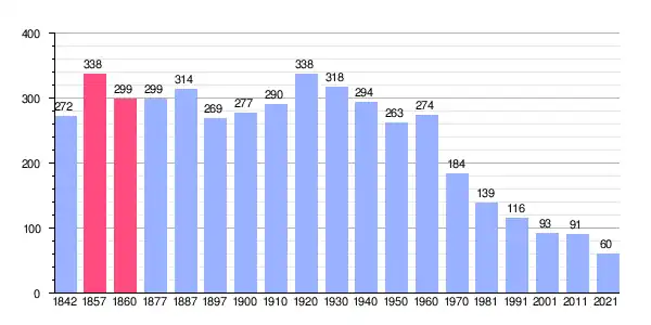 | Gráfica de evolución demográfica de Jarque de la Val[3][4] entre 1842 y 2021 |