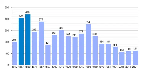 Población de derecho según los censos de población del INE. Población de hecho según los censos de población del INE.Entre el Censo de 1857 y el anterior, crece el término del municipio porque incorpora a 315094 (Peña), 315096 (Rocafuerte).[21] |