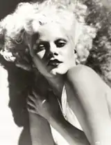Harlean Harlow Carpenter (Kansas City, Misuri, 3 de marzo de 1911-Los Ángeles, 7 de junio de 1937), conocida como Jean Harlow, fue una actriz estadounidense. Destacada por su interpretación de personajes de «chica mala», fue el principal símbolo sexual de principios de la década de 1930 y una de las figuras definitorias de la época pre-code del cine estadounidense.[2] A menudo apodada la «Bomba rubia» o «Rubia platino», Harlow fue popular por su personaje «Laughing Vamp». Estuvo en la industria del cine solo nueve años, pero se convirtió en una de las estrellas más grandes de Hollywood, y cuya imagen ha perdurado. En 1999 el American Film Institute la clasificó en el puesto 22 de su lista de grandes leyendas femeninas de la pantalla del cine clásico de Hollywood.[3]