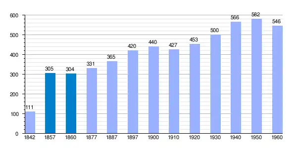 | Gráfica de evolución demográfica de Jemenuño[10] entre 1842 y 1960 |