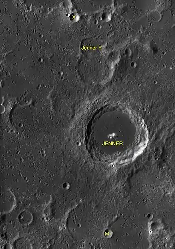 Por convención estos elementos son identificados en los mapas lunares poniendo la letra en el lado del punto medio del cráter que está más cercano a Jenner.