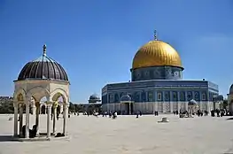 Jerusalén es una de las tres ciudades más sagradas del islam según la tradición suní, junto con La Meca y Medina.[1] La tradición islámica venera a una serie de profetas anteriores a Mahoma que estuvieron relacionados con la ciudad, entre los que se encuentran David, Salomón, Abraham y Jesús.[2] Además, sostiene que el profeta Mahoma la visitó en un viaje nocturno (Isra wal Mi’raj) y ascendió a los cielos desde ella.[2] Debido a esta importancia, Jerusalén fue la primera alquibla (dirección hacia la que se ora) para los musulmanes, y el propio profeta Mahoma designó la Mezquita de Al-Aqsa como lugar de peregrinaje.[2][3]