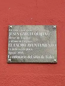 El 4 de septiembre de 2005, Viduerna de la Peña, pedanía del Ayuntamiento de Santibáñez de la Peña, celebró su hermanamiento con el Municipio de Baler,[2] y fue inaugurado el Monumento a la Concordia Universal en recuerdo del Sitio de Baler. En mayo de 2006, la Diputación de Palencia también selló su hermanamiento con la provincia de Aurora (cuya capital es Baler).[3] Su bisnieto, también llamado Jesús (Valbuena García) mantiene una página web con abundante y actualizada información sobre el sitio de Baler.[4]