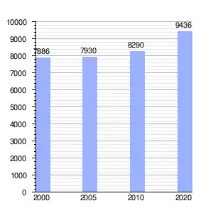| Gráfica de evolución demográfica de Jesús María entre 2000 y 2020 |