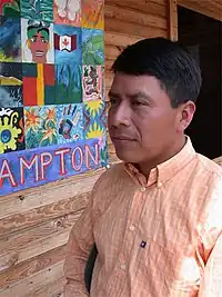 ![]() Jesús Tecú Osorio al frente del instituto educativo de la Fundación Nueva Esperanza, que fundó en 1997. | ||
