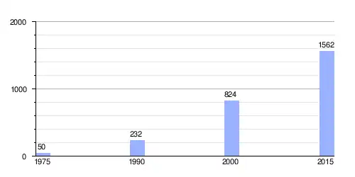 | Gráfica de evolución demográfica de Jharuwarasi entre 1975 y 2015 |