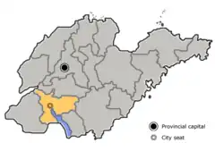 La ciudad prefectura de Jining administra 2 distritos, 3 ciudades y 7 condados: