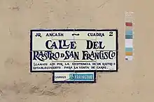 - Cuadra 2: llamada Rastro de San Francisco por ubicarse el primer matadero de animales y el primer rastro (lugar de venta de carne) desde la fundación de la ciudad hasta 1568, cuando por razones de sanidad se trasladó el matadero al barrio de San Lázaro mas no el rastro, que se mantuvo hasta fines del siglo XVIII.[4]
