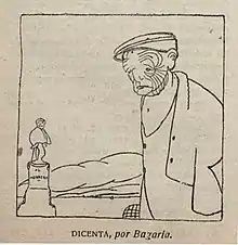 ...lo mismo en la vida pública que en la privada, Joaquín Dicenta forma en las filas de esa vanguardia de revolucionarios que son primero niños sublimes que no miran el ayer ni se preocupan del mañana; después jóvenes generosos que derrochan el talento como derrochan la vida, y en fin combatientes aguerridos que, polvorientos y sangrando, marchan a buen paso hacia la montaña del ideal.Luis Bonafoux