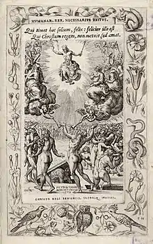 Juicio Final, estampa calcográfica de Johan Wierix sobre dibujo de Pieter van der Borcht para la primera edición de los Humanae salutis monumenta de Benito Arias Montano, impresos en Amberes por Cristóbal Plantino, 1571.