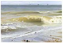 - Meeresbrandung mit fernen Schiffen (Oleaje marino con barcos lejanos), 1836, Galería Nacional de Arte de Karlsruhe