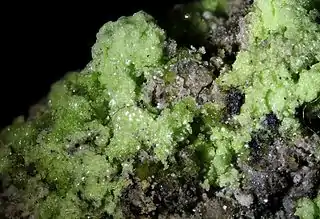 Aparece como mineral secundario en las porciones oxidadas de los depósitos de minerales sulfatos con uraninita, comúnmente en las fosmaciones postmineras.