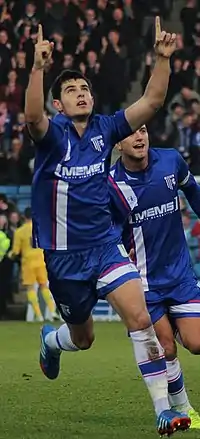 ![]() Egan celebrando un gol con el Gillingham en 2014. | ||
