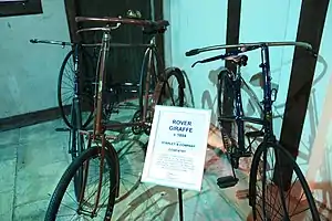![]() Bicicleta de seguridad Rover modelo "jirafa" (1894) en el Museo del Transporte de Coventry |