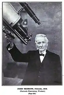 ![]() John Tebbutt en su observatorio en 1915 | ||