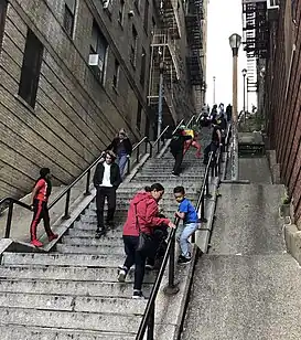 Aunque las escaleras han existido durante años y conducen a algunos de los lugares más famosos de Nueva York, nunca [...] fueron realmente populares debido a su asociación con el crimen en el área.[5]