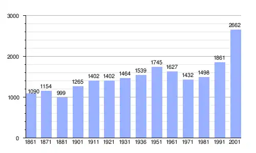 | Gráfica de evolución demográfica de Jonadi entre 1861 y 2001 |