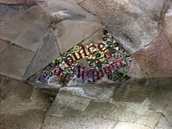 ![]() Dulce lignum, mosaico de Jordi Vila situado en la fachada de la Pasión del Templo Expiatorio de la Sagrada Familia | ||