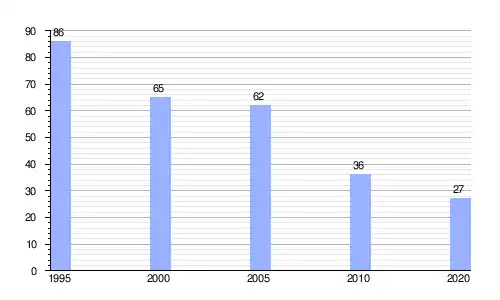 | Gráfica de evolución demográfica de Jornaleros y Aparceros (Pajaritos) entre 1995 y 2020 |
