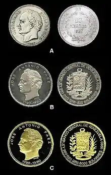 - En 1990 se acuñó una moneda conmemorativa de plata-cobre, cuyo valor nominal era de 500 bolívares con la efigie del General José Antonio Páez.