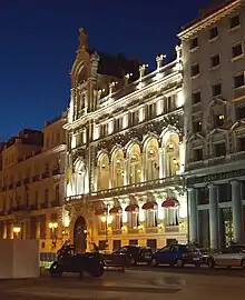 - Edificio del Banco Hispano Americano (finalizado en 1906), en la plaza de Canalejas de Madrid.