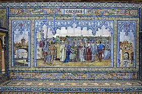En 1921, del taller de Bacarisas, pasó al estudio del arquitecto Aníbal González, donde recibió una buena formación artística y con el que colaboró en sus trabajos para la Exposición de 1929. Una muestra de este trabajo es el banco de la plaza de España, correspondiente a la provincia de Cáceres. También trabajó en el Casino y el Teatro, cuya decoración realizó íntegramente, y en la ormanetación del Pabellón Real. También continuó colaborando con Vicente Traver, cuando este se hizo cargo de la Exposición.[2]