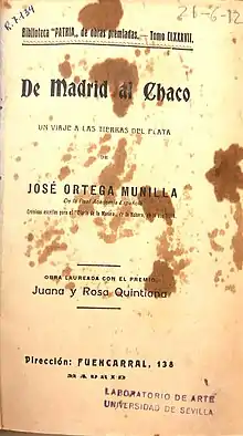 - De Madrid al Chaco: un viaje a las tierras del Plata. Crónicas escritas para El Diario de la Marina de La Habana en el año 1916, s. a., pero 1917, y 1922, viajes.