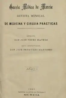 6. Gaceta Médica de Murcia. Revista mensual de Medicina y Cirujía Practicas. Murcia: Imprenta calle de los Postigos, 1; 15/3–15/12/1907. de la que se conservan 10 números en el Archivo Municipal de Murcia