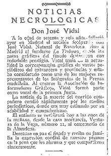 - «Noticias necrológicas. Don José Vidal». ABC: 48. 21 de diciembre de 1935.