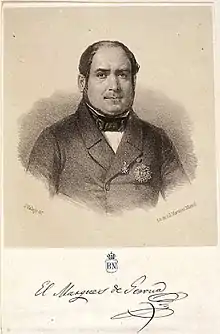 ![]() José de Castro y Orozco, litografía de José Vallejo y Galeazo. Facsímil del autógrafo: El marqués de Gerona. Biblioteca Nacional de España. | ||