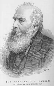 El 23 de diciembre de 1834, Hansom registró la patente de un nuevo modelo de coche de caballos, el Hansom cab, que se distinguía, además de por su ligereza y rapidez, por importantes mejoras en seguridad con un eje suspendido, grandes ruedas y centro de gravedad bajo que lograban giros más rápidos y la reducción de accidentes.[1] Hansom vendió la patente a una compañía por £10,000, sin embargo, debido a dificultades financieras, la suma nunca se pagó. El primer Hansom cab salió de Hinckley en 1835 y tras algunas mejoras en su diseño, aunque siempre manteniendo el nombre de Hansom, su uso se extendió rápidamente por el resto de países convirtiéndose en una figura habitual de las calles del siglo XIX en todo el mundo.