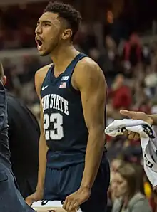 Jugó cuatro temporadas con los Nittany Lions de la Universidad Estatal de Pensilvania, en las que promedió 8,9 puntos, 4,5 rebotes, 2,6 asistencias y 2,1 robos de balón por partido.[1] Fue incluido en el mejor quinteto defensivo de la Big Ten Conference en sus dos últimas temporadas, y elegido mejor defensor de la conferencia en 2019.[2]