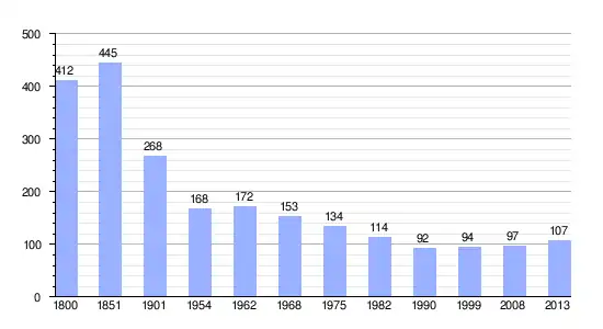Los datos demográficos contemplados en este gráfico de la comuna de Jours-en-Vaux[4] se han cogido de 1800 a 1999 de la página francesa EHESS/Cassini, y los demás datos de la página del INSEE.[5]