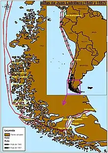 Juan Ladrillero (Moguer, Huelva, ca. 1505 - ¿Concepción? (Chile) 1574) fue un piloto, cosmógrafo, cartógrafo y teniente de gobernador español; considerado, después de Fernando de Magallanes, como el otro descubridor del estrecho de Magallanes; siendo el primero en navegarlo en ambos sentidos.[1]