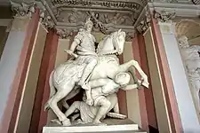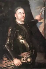 ![]() Juan III Sobieski (por Jerzy Siemiginowski-Eleuter), con armadura y bastón de mando. | ||
