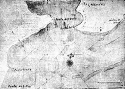 Al desembarcar, notó que existió una corta presencia de un grupo de ingleses instalados poco tiempo antes de su llegada y procedió a destruir «el torreón de madera, almacenes, cuarteles, hospital, hornos y cuanto edificio halló en pié, quemando las maderas e imposibilitando cuanto encontró capaz de algún servicio». La destrucción total del asentamiento ocurrió entre el 18 y el 24 de marzo de 1780.[1][9]